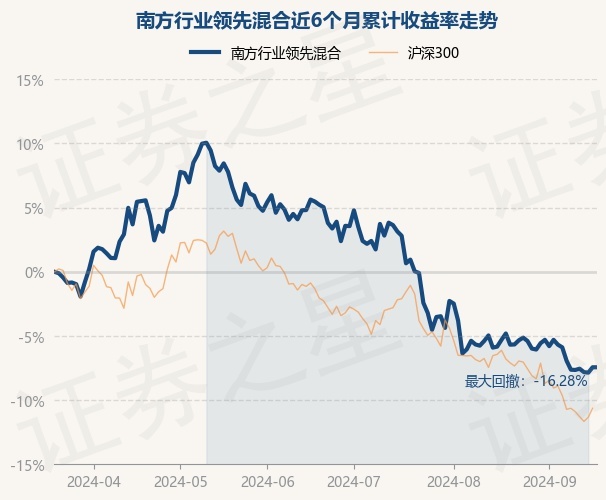 本站消息,9月19日,南方行业领先混合最新单位净值为0.489元,累计净值为0.489元,较前一交易日上涨0.0%。历史数据显示该基金近1个月下跌2.73%,近3个月下跌12.21%,近6个月下跌7.4%,近1年下跌5.21%。该基金近6个月的累计收益率走势如下图:
